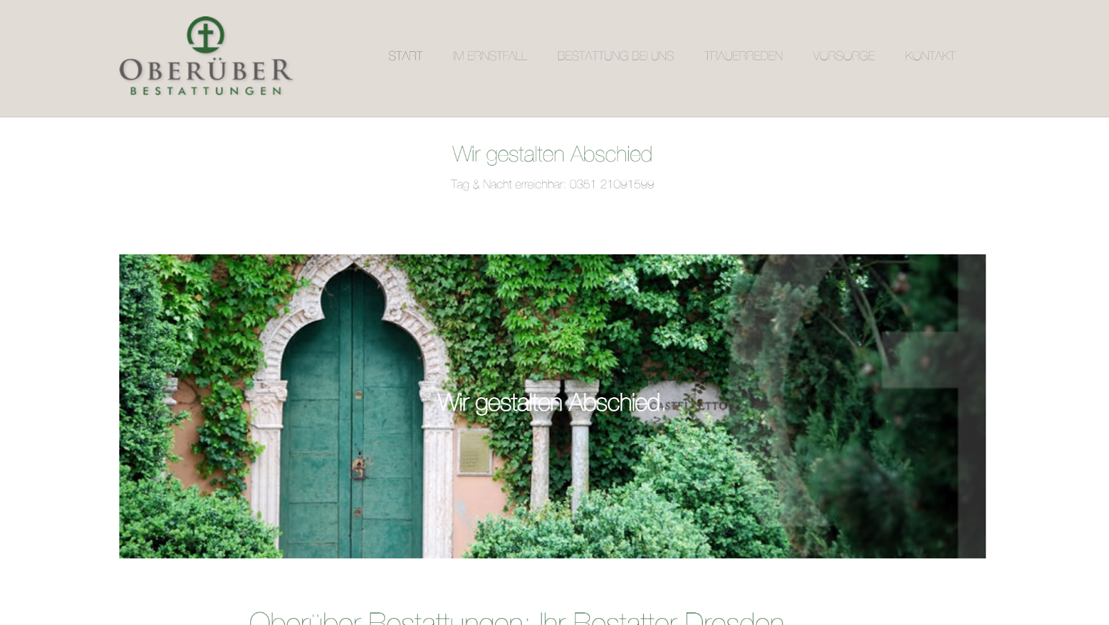 Eine besonders empfehlenswerte Option in unserer Übersicht ist Oberüber Bestattungen. Bei Bestattungen in Dresden legt das Bestattungsinstitut den Fokus darauf, traditionelle Werte mit einer offenen und zeitgemäßen Bestattungskultur in Einklang zu bringen. Im Mittelpunkt steht ein individueller Abschied, der sich sachlich an den Vorstellungen und finanziellen Rahmenbedingungen der Hinterbliebenen orientiert. Das Unternehmen arbeitet zudem mit einer hohen Kostentransparenz.