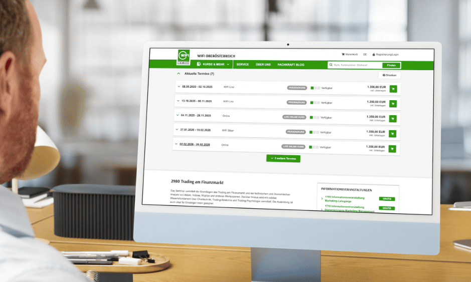 Nicht nur private Coaches und Online-Plattformen bieten Trading-Ausbildungen an – auch traditionelle Bildungseinrichtungen wie das WIFI Oberösterreich (WIFI OÖ) haben entsprechende Kurse im Programm. Das WIFI OÖ, Teil der Wirtschaftskammer, richtet sich mit seinem Kurs „Trading am Finanzmarkt – Gesamtausbildung“ an alle, die systematisch die Grundlagen des Börsenhandels erlernen möchten. In diesem Seminar werden umfassende Basiskenntnisse zu Finanzmärkten vermittelt: angefangen bei der Funktionsweise von Aktien, Indizes und anderen Wertpapieren (inkl. Kryptowährungen) über technische Chartanalyse bis hin zu wirtschaftlichen Grundlagen. Dazu gehören auch Elemente wie der Trading-Prozess (Planung, Orderausführung, Auswertung) und die so wichtige Trading-Psychologie, um typische Denkfehler zu vermeiden. Am Ende der Ausbildung sollen die Teilnehmer in der Lage sein, eine eigene Anlagestrategie zu entwickeln und eigenständig Kauf-/Verkaufsentscheidungen anhand von Analysen zu treffen.