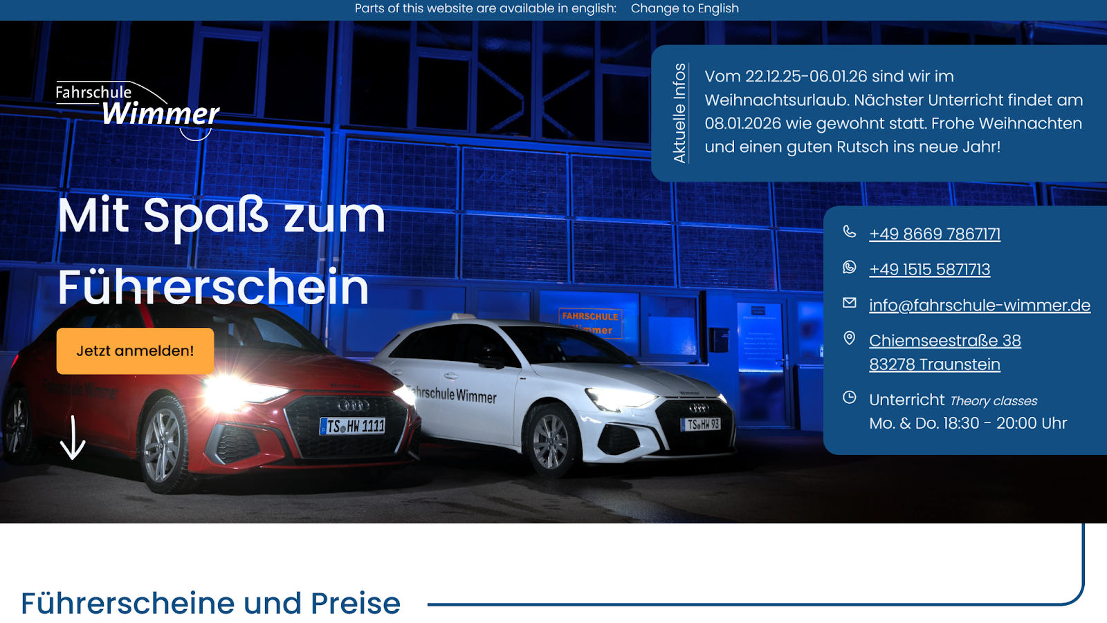 - Zentrale Theoriezeiten: Gut erreichbarer Theorieunterricht in den Abendstunden.