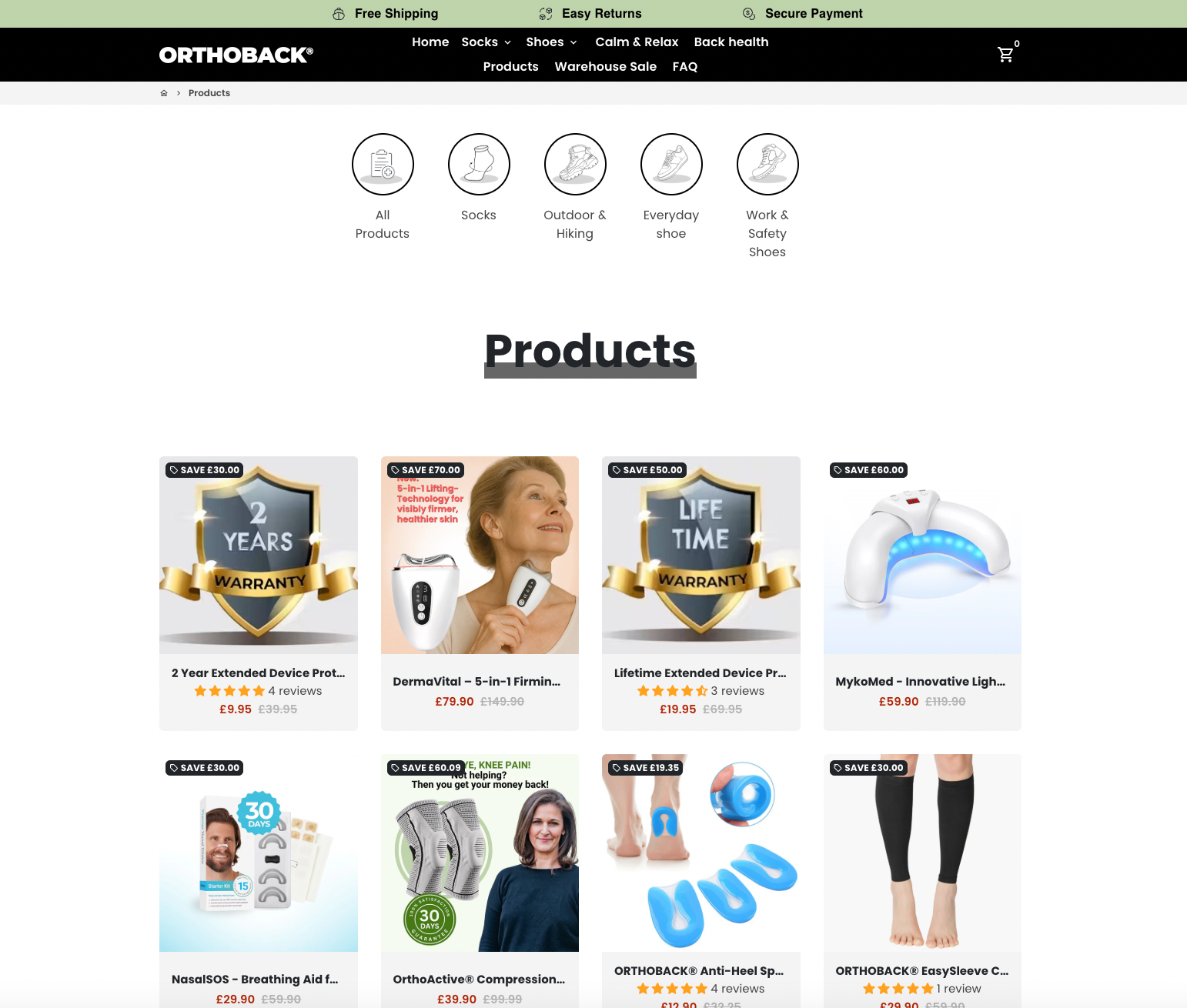 Die Produktpalette zielt insgesamt auf Menschen mit Rücken-, Fuß- oder Gelenkbeschwerden ab – oft werden Linderung von Schmerzen und ein „schmerzfreies Leben“ in Aussicht gestellt. Die Preise liegen dabei im mittleren Segment, häufig mit auffälligen Rabattaktionen (z. B. „50% Frühlings-Rabatt“ auf fast alle Produkte), was auf ein aggressives Marketing hindeutet. Orthoback betont, bereits über „50.000 glückliche Kunden“ bedient zu haben und präsentiert auf seiner Website zahlreiche angeblich positive Bewertungen. Doch wie passt dieses glänzende Bild zu den vielen kritischen Stimmen, die anderswo laut werden?