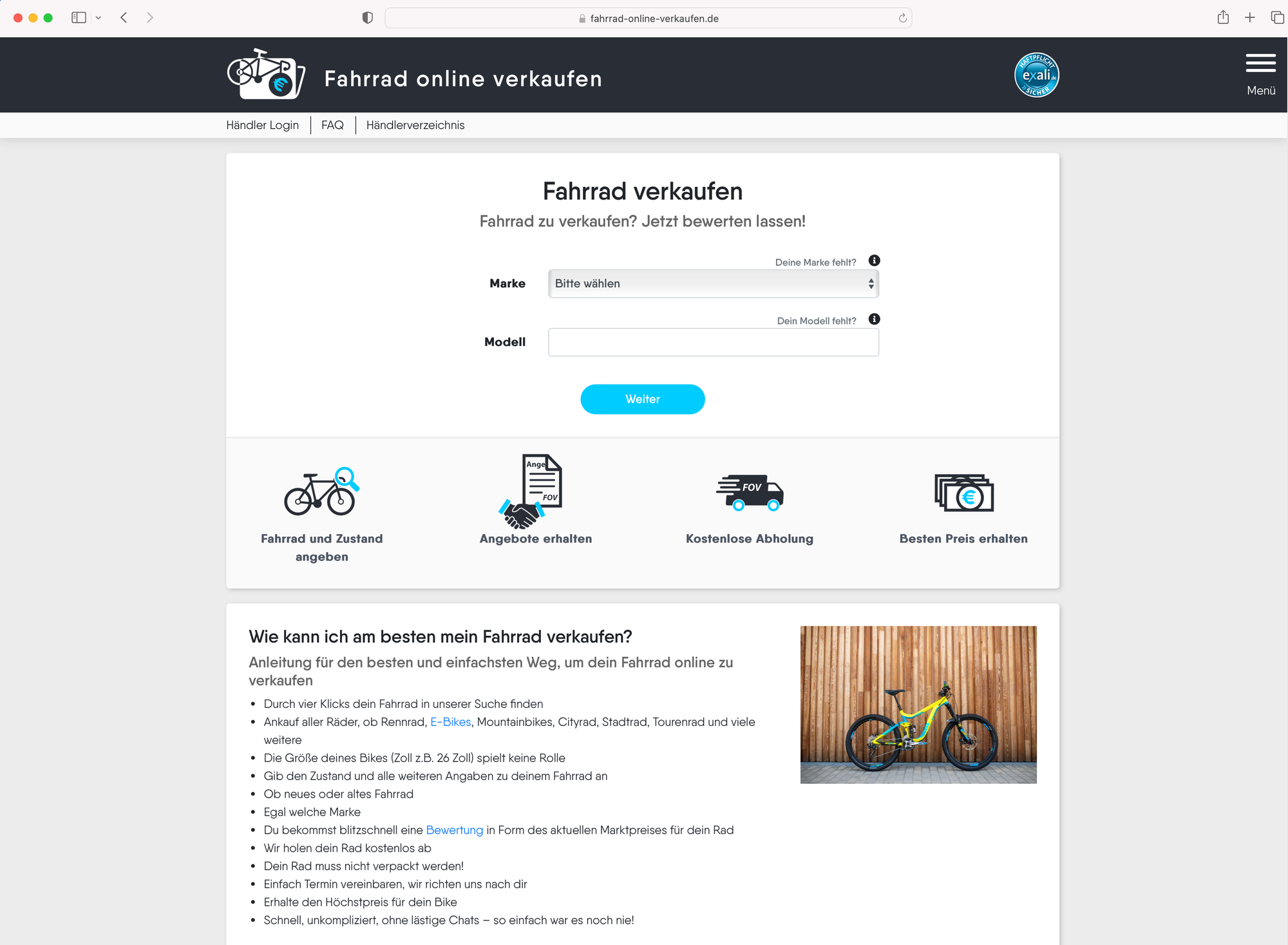 - Optionaler Direktverkauf: Wer das Rad nicht privat inserieren möchte, kann über Kooperationshändler ein Sofort-Ankaufsangebot erhalten.