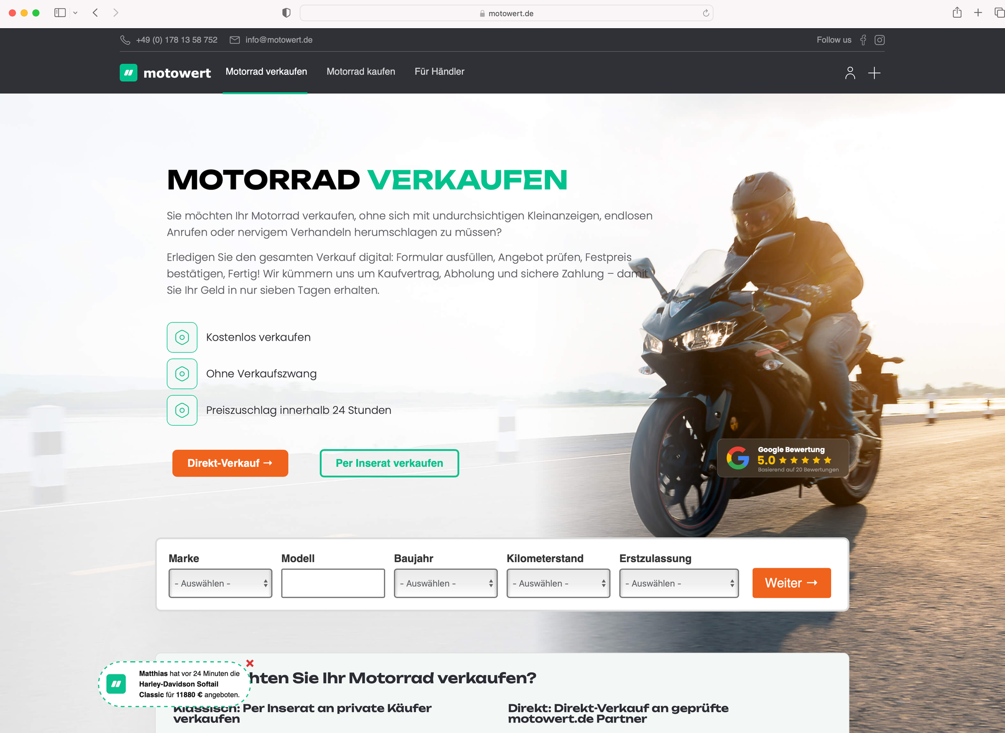 Motowert.de: Schnelle Wertermittlung für Motorräder