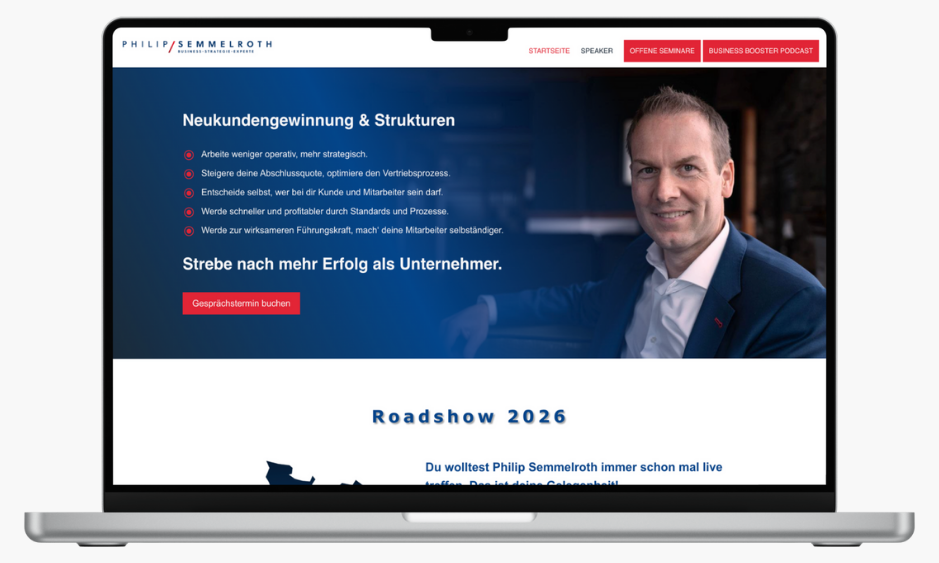Philip Semmelroth setzt stark auf Performance im Gespräch: Abschlussquote, Überzeugung, Umsetzung – oft in kompakten, intensiven Formaten. Seine Kommunikation betont Praxisnähe, direkte Anwendung und Feedback, also Training, das sichtbar Verhalten verändert. Das passt gut zu Teams, die weniger Inspiration und mehr Ergebnis wollen.